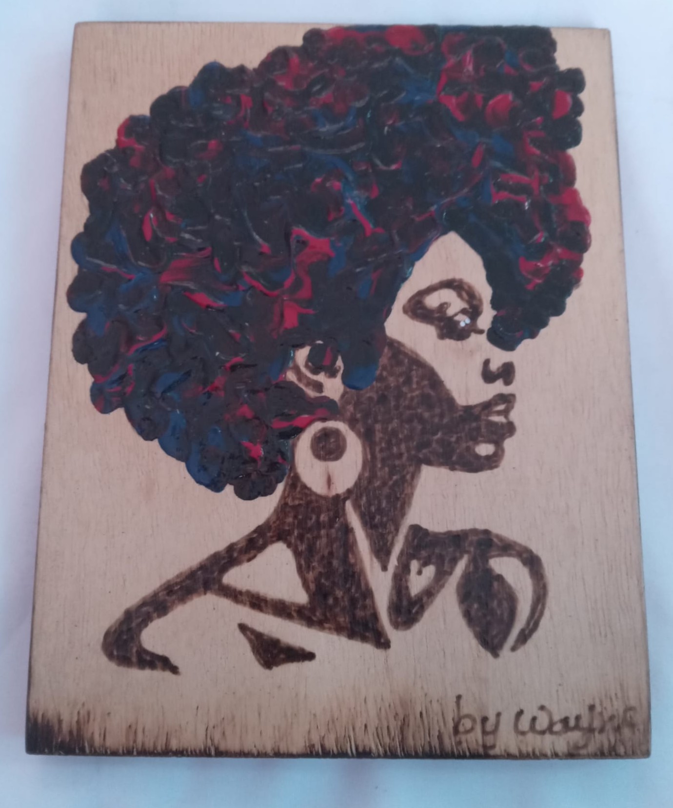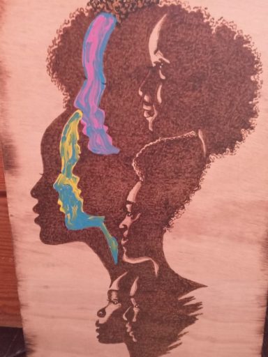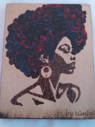 These are samples of woodburning art depicting afros. If you see something you like or would like to contact us to create something unique for you, click here.